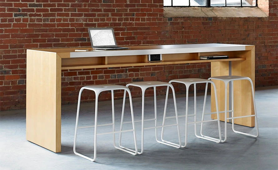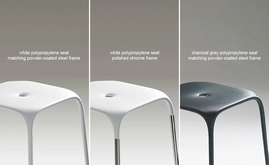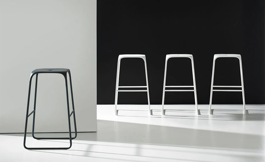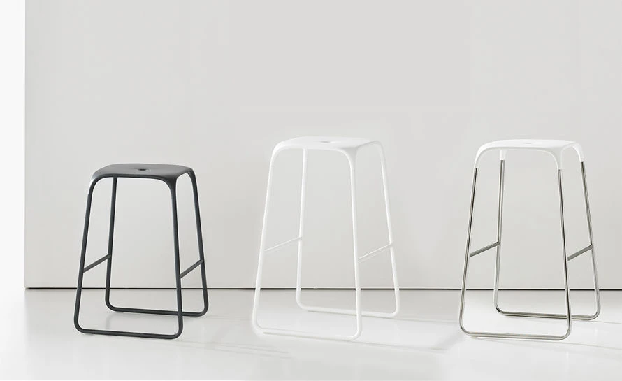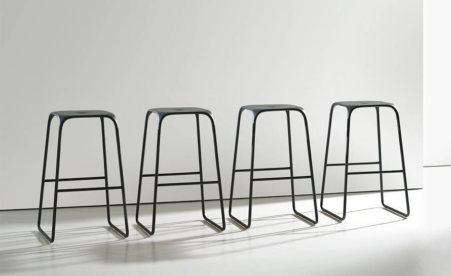 A simple yet elegant design produced by using a combination of materials. The Ace stool’s seat and legs blend together forming a beautiful stool with a comfortable seat. The stool features a polypropylene seat and slender steel legs with foot rests at the appropriate height. Available in your choice of bar or counter height in three finish options.