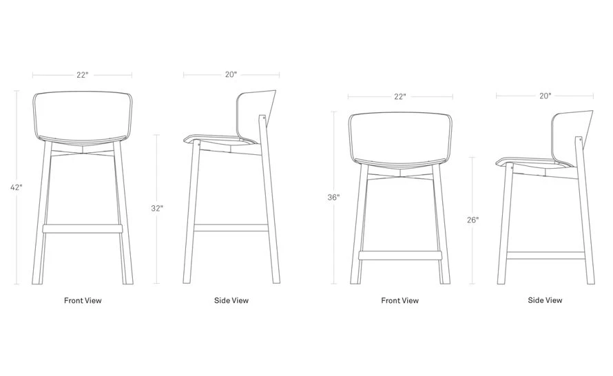counter stool: 22″ w | 20″ d | 36″ h | seat: 26″ h