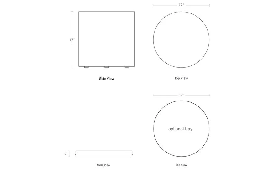 optional tray: 17″ dia. | 2″ h