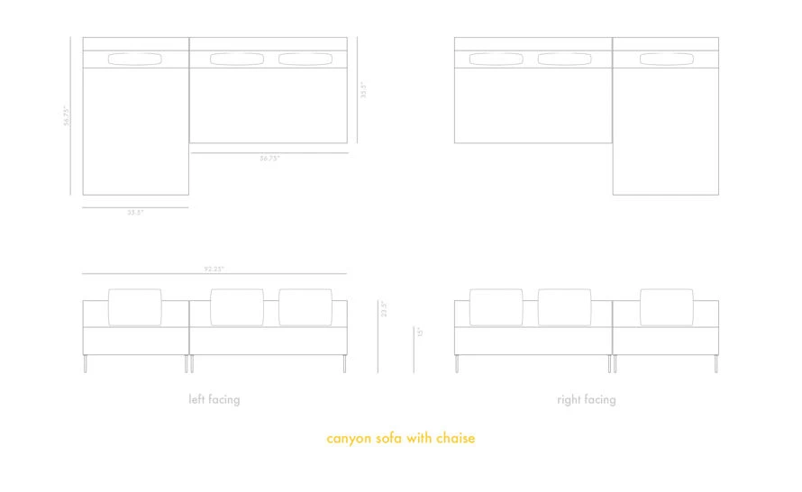 This set includes the CAN150 sofa & CAN15C chaise with three cushions as pictured. Other variations available, please call for details.