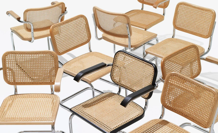 Marcel Breuer conceived the first tubular steel chair, in 1925, based on the tubed frame of a bicycle. His revolutionary Cesca chair, named after his daughter Francesca, marries user-friendly caning and hardwood Beech with the industrial-age aesthetic of cantilevered tubular steel. Functional, simple and distinctly modern. Knoll is the only authorized and licensed manufacturer of the Cesca chair. Marcel Breuer’s signature and Knoll studio logo are stamped into the base of each chair to verify authenticity.