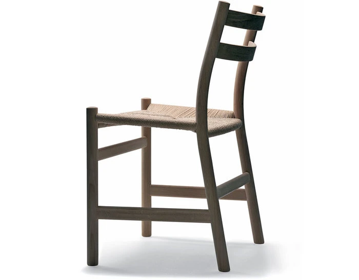 CH47 dates back to 1965 and is a smart and quite comfortable chair. A classic piece of Danish Modern designed by the masterful Hans wegner. Optional Loke leather seat cushion can be specified in a variety of color options. Also available with arms as the CH46 chair.