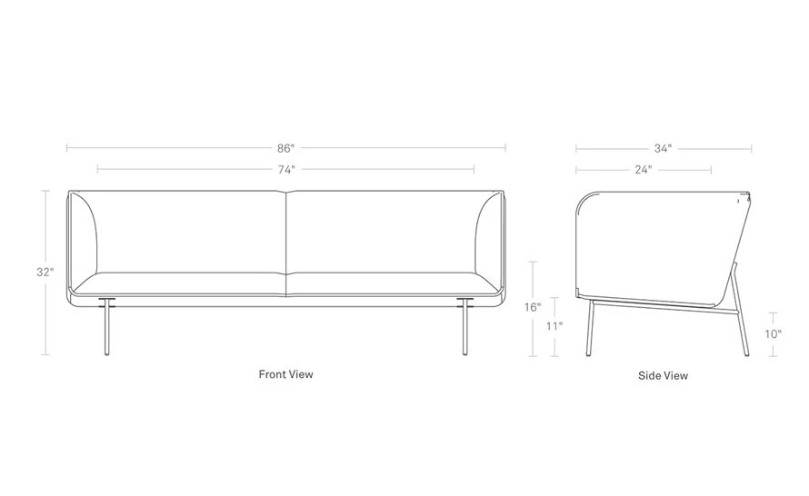 dandy sofa: 86″ w | 32″ h | 34″ d | seat: 16″ h | 74″ w | 24″ d