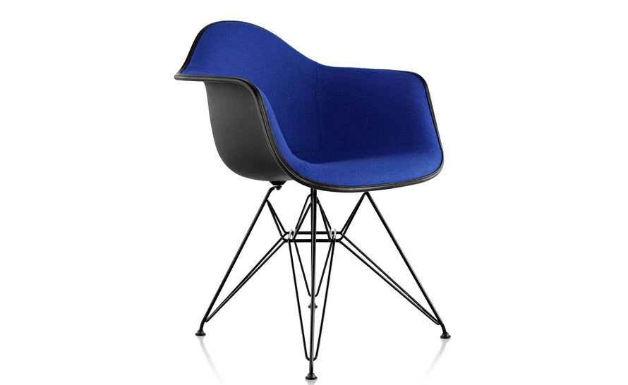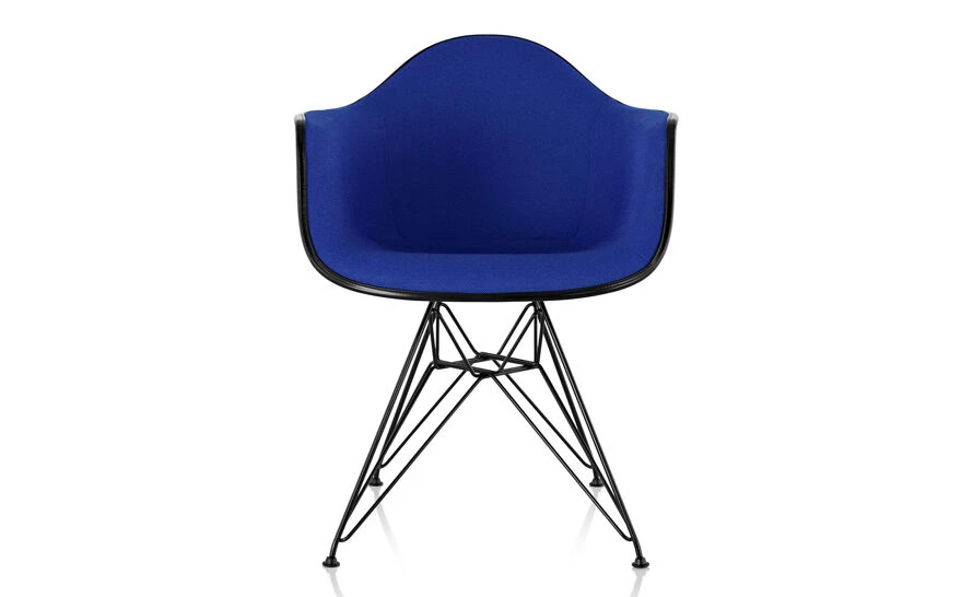 The Eames molded chair in both arm and side chair formats in fiberglass or plastic can be configured with a choice of wire, dowel leg, stacking, rocker, and 4-leg bases. An array of trim, finely tailored Hopsak fabrics designed by Alexander Girard, Herman Miller’s Textile Director from 1952 to 1973, round out the collection of shell customization options, fully restoring the integrity of the original 1953 shell chair offerings. All chairs can be recycled through the Herman Miller Take Back Program.
