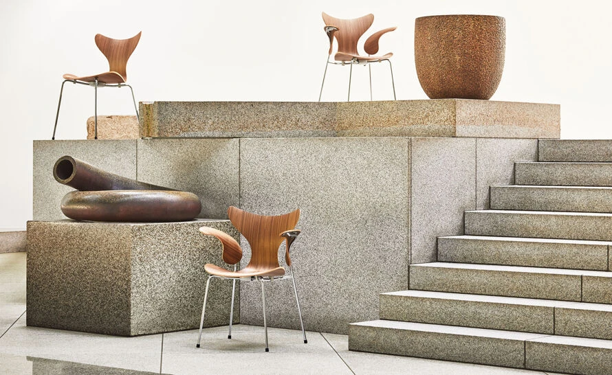 Arne Jacobsen was very productive both as an architect and as a designer. His cooperation with Fritz Hansen dates back to 1934. The Ant and Series 7 chairs, produced in 1952, propelled both Jacobsen and Fritz Hansen’s names into furniture history. At the end of the 50’s Arne Jacobsen designed the Royal Hotel in Copenhagen, which introduced the Egg, the Swan, the Swan sofa and Series 3300 to the design world. Arne Jacobsen was and is an admired and outstanding designer. His furniture and other design work have become a national and international heritage.