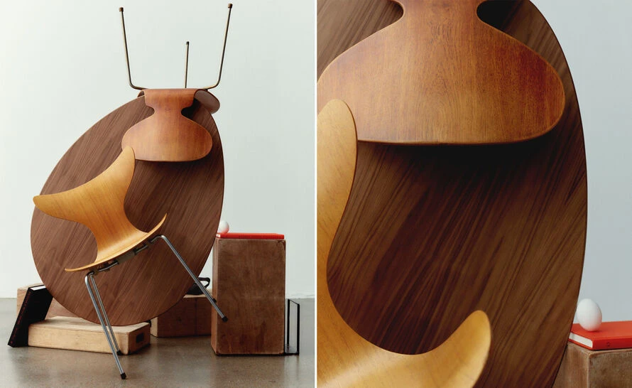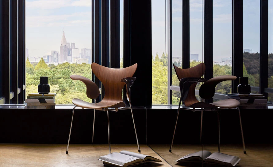 Arne Jacobsen’s chair model 3208 was originally designed for the Danish central bank. It is also referred to as the “Lily™” and was first introduced at the Danish furniture fair in 1970. The chair is a result of an extremely complicated process that ensures the perfect curves and hence best comfort.