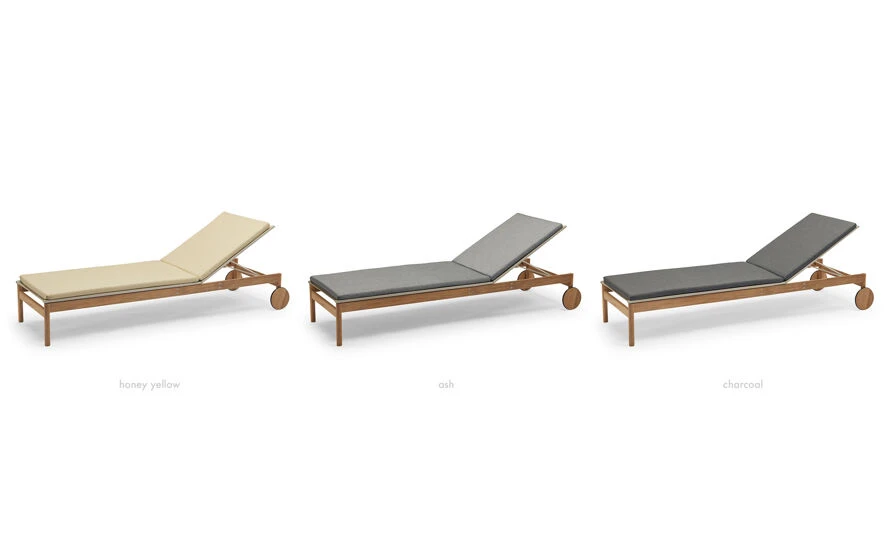 The Pelagus Sunbed can be further enhanced with the addition of a wooden armrest, that makes it even easier to waste away the hours with a book. The armrest can be placed on one or both sides of the sunbed, forming a handsome addition to it well-crafted slender teak frame. Optional cushion covered in the exclusive Sunbrella woven fabric. The cushion is weatherproof, durable, and made of foam with an open-cell structure that allows water to pass through while holding its shape and remaining firm year after year.
