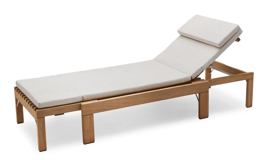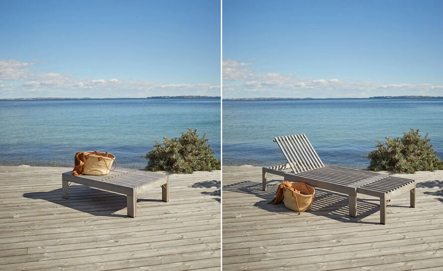 Riviera has it all. It is a sunbed, a bench, a coffee table and a guest bed. Designed in 1990, this versatile design has become an outdoor classic, appreciated for its flexibility and straightforward appearance. The slatted teak construction is adjustable in length and can easily be supplemented by a comfortable cushion.