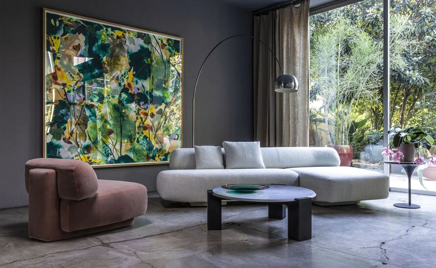 The Gogan collection takes its name from nature and in particular from Japanese stones rendered smooth by time and water, which provided the inspiration for this project. This is the name given to the Japanese stones placed to protect and embellish the banks of rivers and lakes. The sofa’s form, as much as the armchair’s form, in fact reminds us of flat stones sculpted by wind and water, solid yet smooth enough that you can lie on them.
