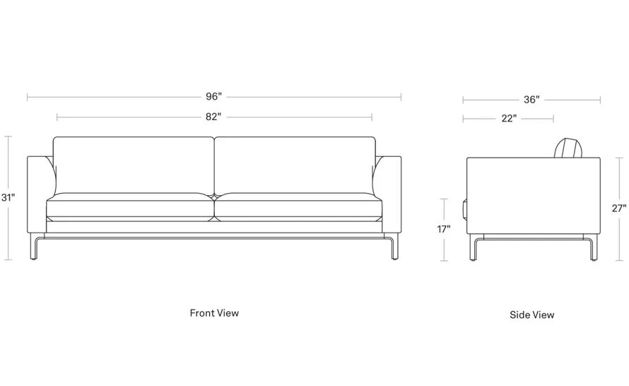 96″ w | 31″ h | 36″ d | seat: 17″ h | 22″ d | 82″ w