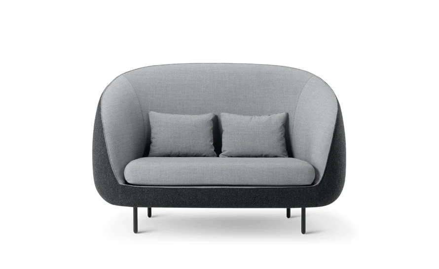 In Haiku a protectively encompassing outer shell is combined with a softer interior, providing an intimate enclosure. Haiku is an enveloping sofa that invites reflection and refuge. Gamfratesi is Danish/Italian design duo Stine Gam and Enrico Fratesi, and references to their inherited juxtaposition of design cultures are easily identified in Haiku. The design is clear and well conceived, incorporating an interesting twist that gives the sofas a modern appearance. The contrast between the enveloping outer shell and the soft, intimate inner is highlighted by a contrasting combination of textiles. With delicate black lacquered legs, Haiku seems to almost hover above the ground.