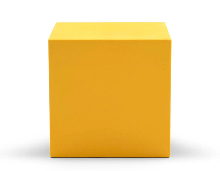 The Vignelli cube is offered in a variety of color options. The collection is completed by the low table & bench.