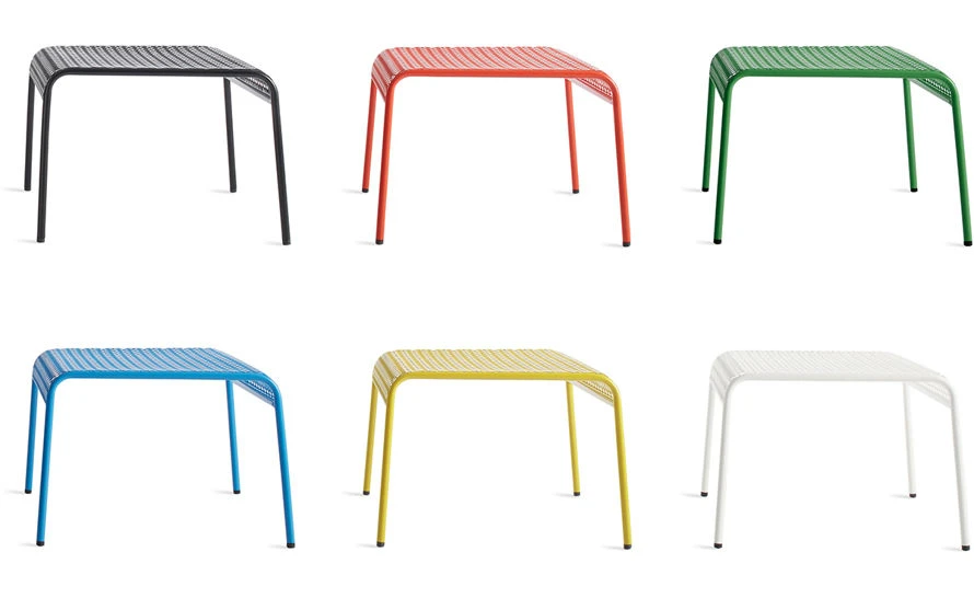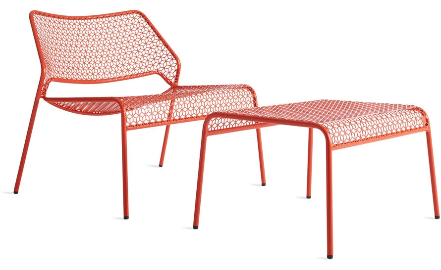 Put the lime in the coconut. Inspired by hand-woven rattan, Blu Dot created a bold graphic pattern in punched metal while a simple, stackable tubular frame maintains the clarity of form. The result is friendly on the eyes as it is on weary legs. Pair with the Hot Mesh Lounge Chair or use it solo. Stackable and suitable for use indoors or out. Also available as a café chair, barstool or counter stool.