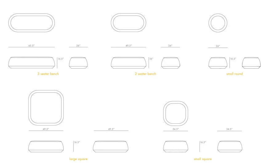 ile small square pouf: 34.5″ L | 34.5″ w | 16.5″ h