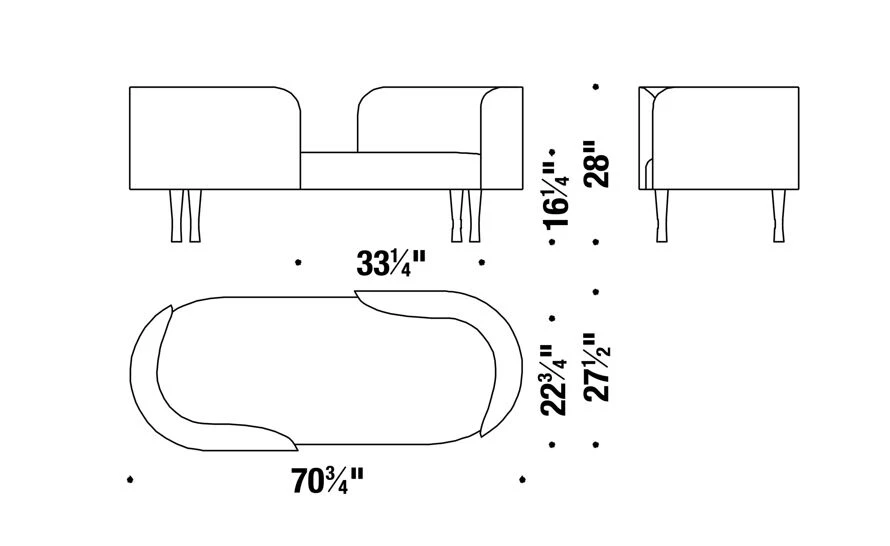 70.75″ w | 27.5″ d | 28″ h | seat: 16.25″ h