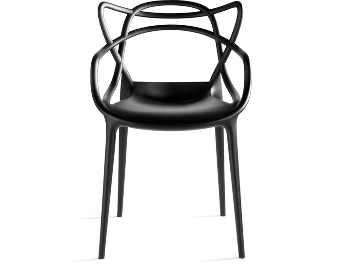 On its four slim legs, the Masters seat is roomy and comfy. The back of the chair is its most fascinating feature, of course, characterised by the fullnesses and empty spaces created by the curvaceous criss-crossing lines of three different backs descending to meet together at the seat.