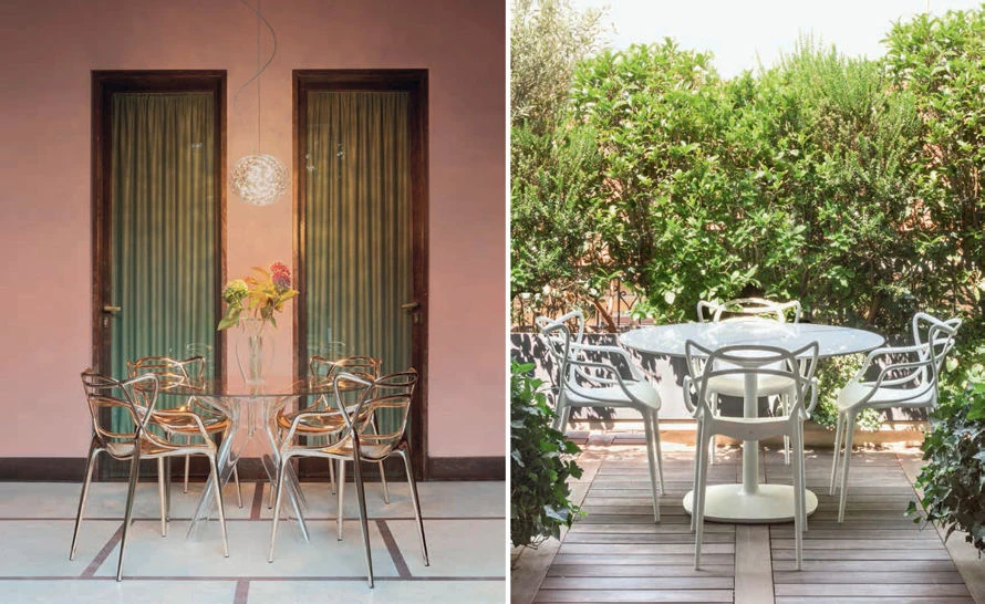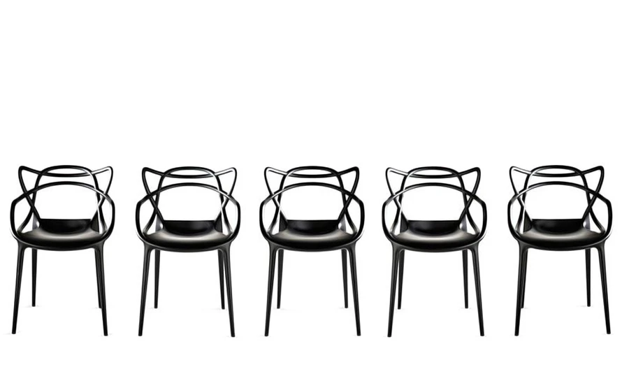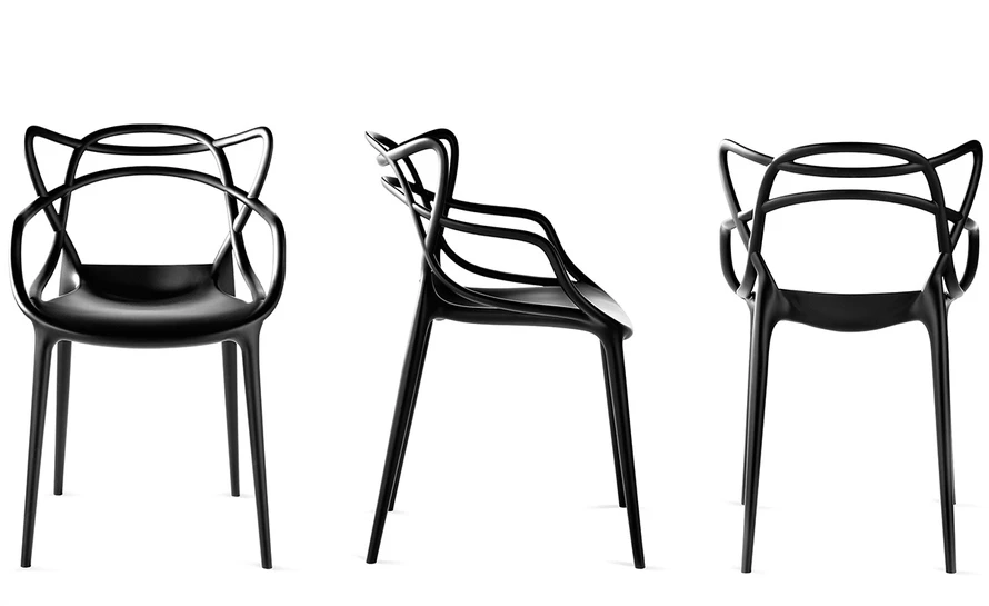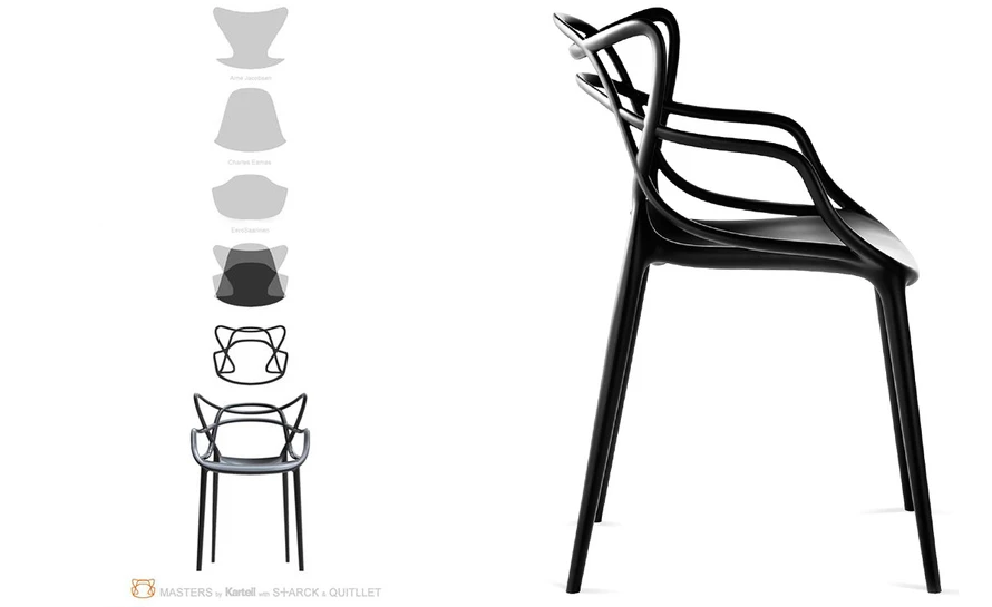 Philippe Starck pays homage to three contemporary design icons and, through a fusion of styles, adds it all up to a “stylistic sum” – the Masters chair. Re-interpreted in a space age key, the 7 Series by Arne Jacobsen, the Tulip Armchair by Eero Saarinen and the Eiffel Chair by Charles Eames weave into a captivating and sinuous hybrid.