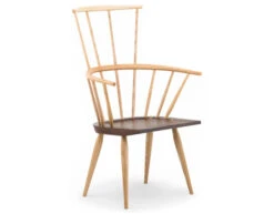The Kimble Windsor chair is offered in solid European ash with a solid American black walnut seat with either a Danish oil or black oil finish.