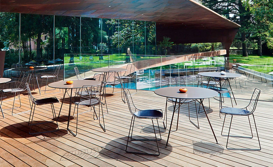 Subtle allusions that capture the pleasing irregularity of nature create comfortable and iconic surfaces and silhouettes. The observation of nature is revealed in the shape – and in the particularity of the structures of chairs and tables, displaying an irregular design reminding of the branches of a tree or veins of a leaf.