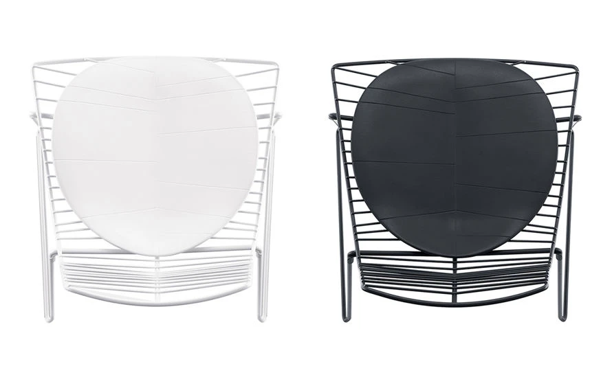 Leaf is a manifesto: an image simultaneously nostalgic and forward thinking. Its simplicity of form and ease of application encourage creative inclusion in diverse environments, both inside and outside. Chairs are fabricated in matte powder-coated steel in white, green or moka. A detachable polyurethane cushion is available for indoor and outdoor (powder-coated versions) use. Perfect for relaxing at work or at home. This series is available as chair, stackable chair, lounge, chaise lounge and tables.