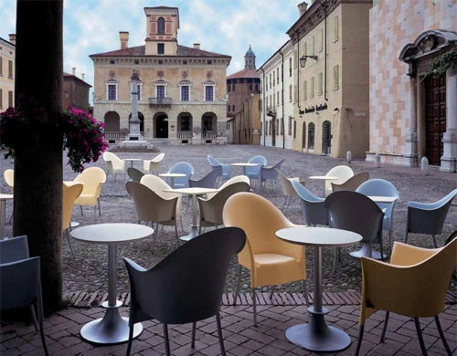 The polyethylene construction of Lord Yo allows the chair to be used either indoors or outdoors. The simple and slender design adds elegance while its ability to stack (up to 4 pieces) makes it perfect in any space, public or private. Lord Yo Stackable armchair is offered in your choice of colors and sold in sets of four chairs of the same color. The series is completed by the Lord Yi tables.