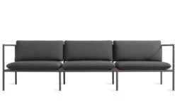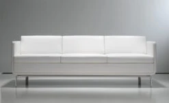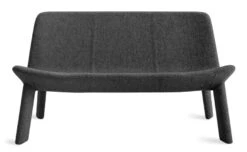The Love sofa features a metal frame covered in molded foam and accented with ash wood legs. It is offered in your choice of leg and upholstery options. The Love sofa will be entirely upholstered with the selected fabric. The Love sofa includes the three back pillows as pictured. It can also be specified with a composition which is boucle combined with divina upholstery, as shown in images. These options, as well as the high back version can be specified by calling the hive showroom.