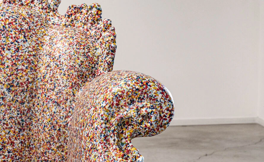 The Magis Proust is made from rotational-molded polyethylene. The armchair is available in orange, red, blue, white, black and two variations of the original dotted multi-color pattern, is weatherproof and, as such, is suitable for outdoor use.