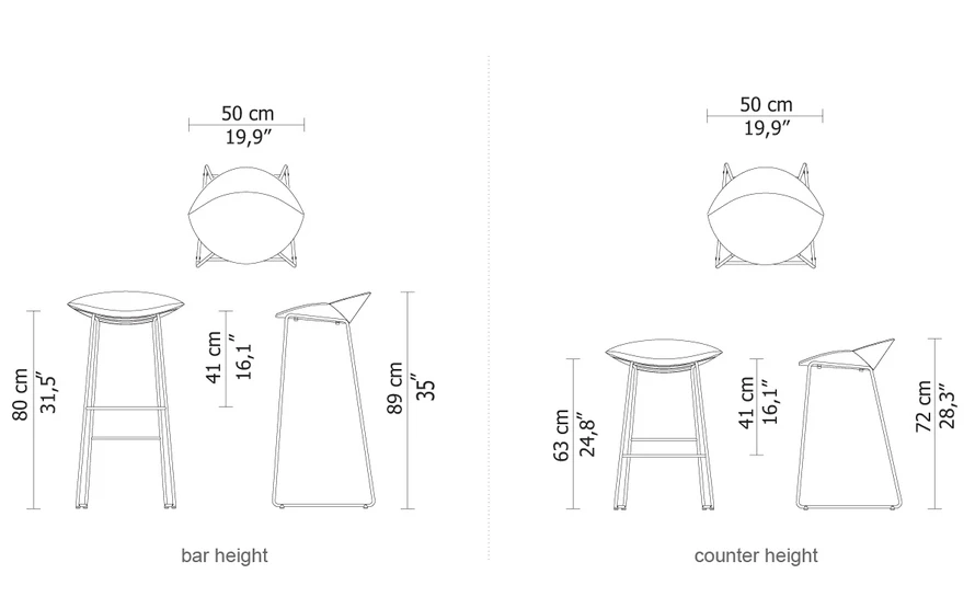 bar height: 19.9″ w | 35″ h | seat: 31.5″ h