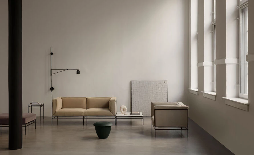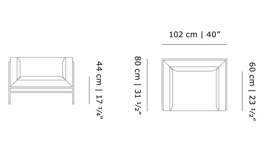 The piece captures the best of two worlds, the Italian super lounge sofa on one side and the compact Danish box sofa on the other. Set on a thin, open steel frame, the cushions are firmly held together by zippers and carefully mitered in the corners of the frame, resembling the sharp edges of folded paper.