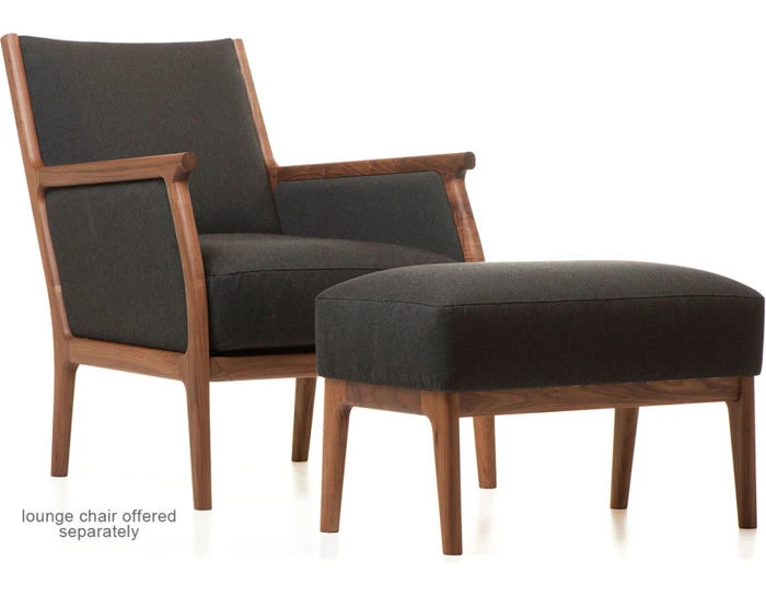 Available in American black walnut, American white oak, or European Ash in a range of finishes, and a range of fabric and leather options. Lounge chair offered separately.