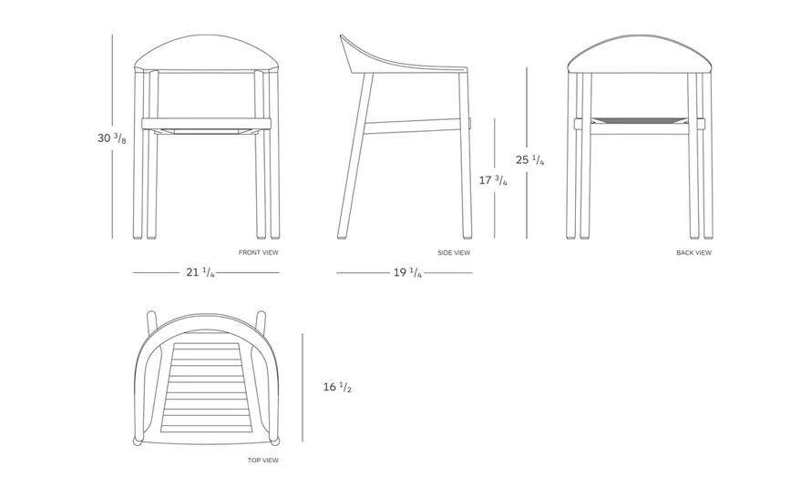 21.25″ w | 19.25″ d | 30.4″ h | seat: 17.75″ h | 16.5″ d | arms: 25.25″ h