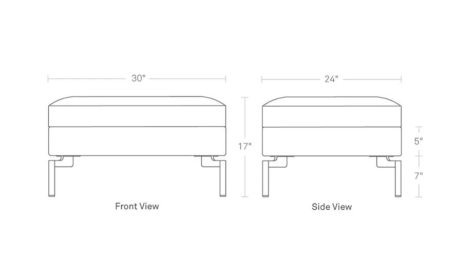 new standard ottoman: 30″ w | 17″ h | 24″ d | legs: 7″ h