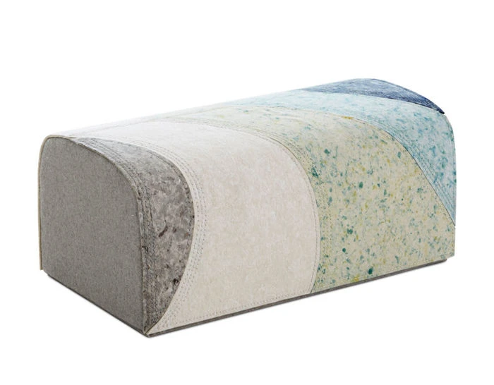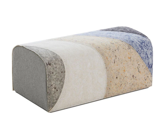 The Pouf from the Nuances collection, a large seat with which you can add surprising three-dimensionality to the rugs of this series: Line, Round and Curve. The different elements of this collection can be combined with each other to compose dynamic and sinuous landscapes that acquire volume thanks to the poufs, transmitting an apparent sense of continuity. Made with a special type of felt developed by the Patricia Urquiola and GAN, its surface simulates a stone texture reminiscent of granite.