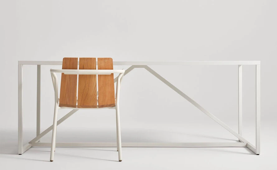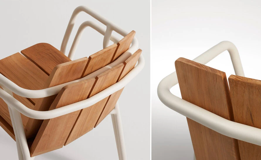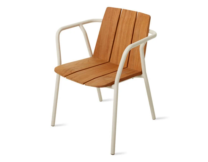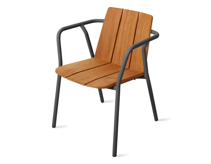 No cookies to disable here. Tapered teak planks and powder-coated aluminum mind-meld to turn heads and appease backsides. Beveled surfaces soften the seat experience. If you’re checking your email, you’re doing it wrong. Stackable and suitable for indoors and out.