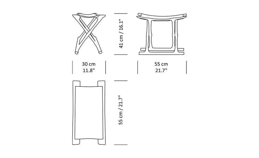 The Egyptian Folding chair is a true Danish Design Classic. Ole Wanscher drew his inspiration from Ancient Egypt and Thebes when designing this Folding stool. According to history, the Folding chair has long been recognized as a seat of dignity and power and the construction and finish are outstanding.