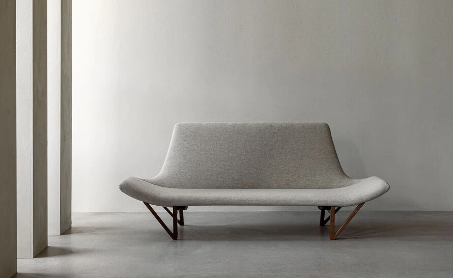 Their Pagode Sofa was presented for the first time at master cabinetmaker Thorvald Madsen’s stand at the Snedkerlauget exhibition in Copenhagen in 1956. It challenged established design with its significant idiom; light and precise in its design language and inspired by Japanese architecture and temple construction. The Pagode Sofa never quite achieved the same status as the couple’s other pieces of furniture during their lifetime. But today its urban, unique and expressive form is enjoying new relevance in modern spaces.
