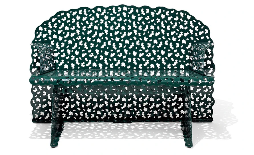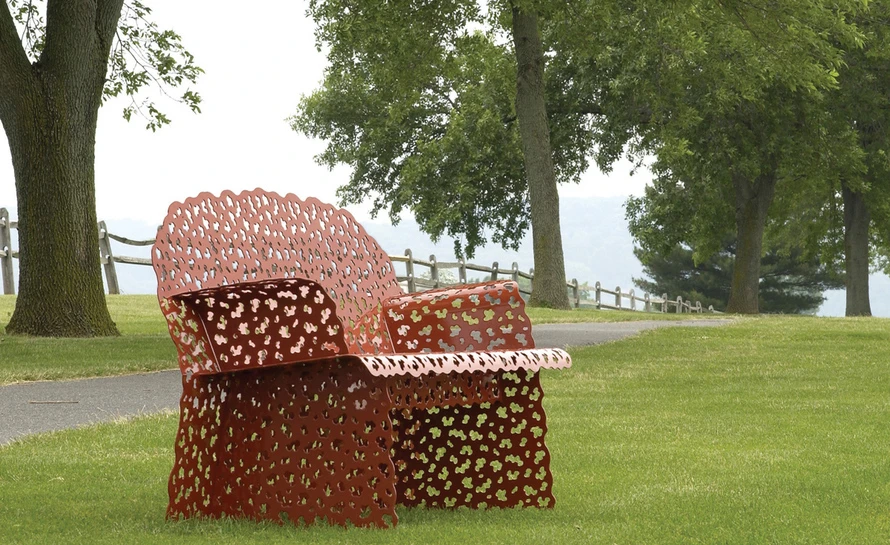 Richard Schultz designed the Topiary collection to look like shrubs pruned to look like furniture. The whimsical pieces act as light filters, disappearing into nature and creating patterns of dappled light on the ground below.