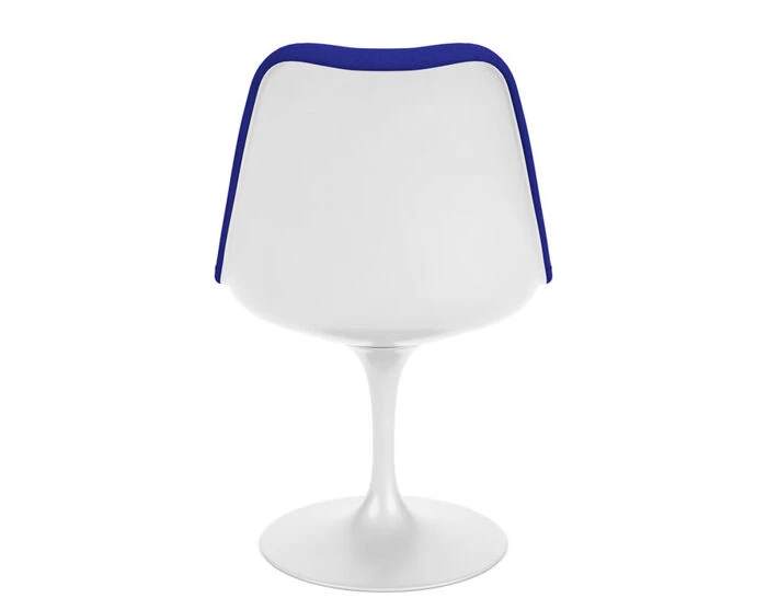 Construction notes: Base is a cast aluminum, rilsan coated finish. Shell is molded fiberglass with a reinforced plastic bonded finish. Upholstered foam cushion is removable, with zippered cover and velcro fastening. Base and shell finish available in white or black. Upholstery available with a seat cushion only or with a fully upholstered inner shell. The signature of Eero Saarinen is located on the underside of the base.