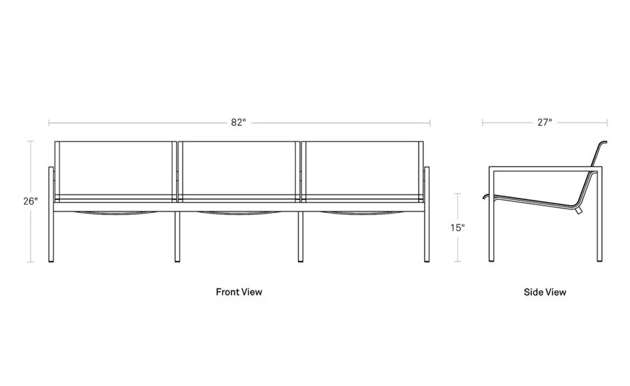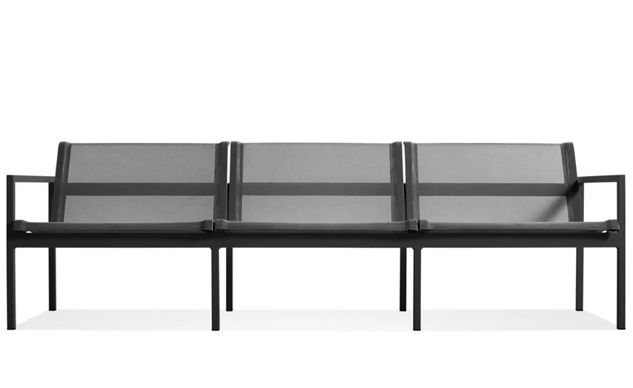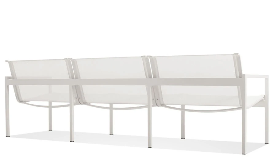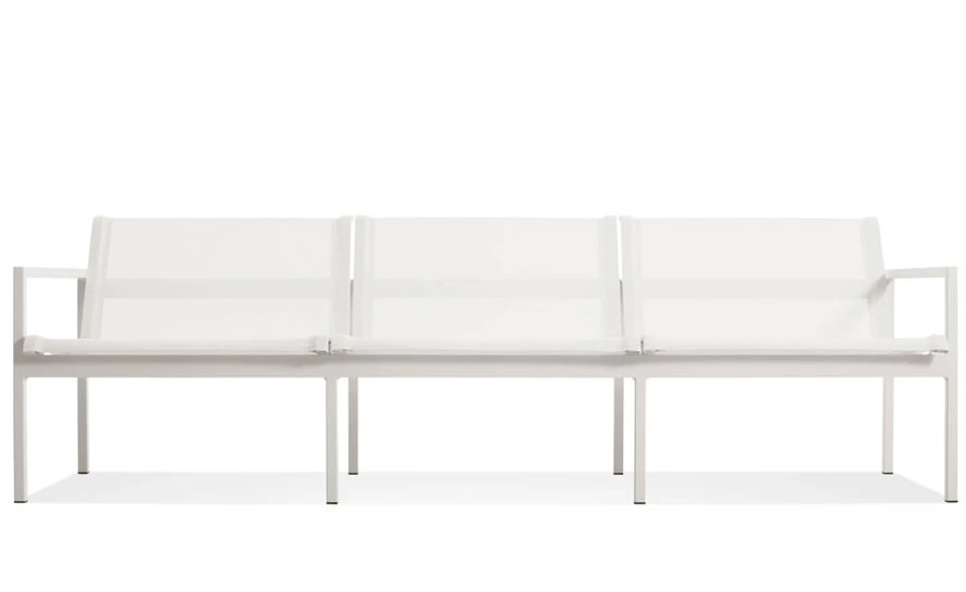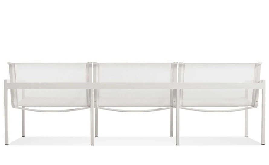 Don’t forget to rub the lotion on your skin. The Skiff Outdoor 3 seat sofa features a crisp and minimal powder-coated aluminum frame and Batyline textile. The Batyline mesh is mildew, rot and tear resistant. The entire Skiff collection offers clean lines designed to weather the elements.