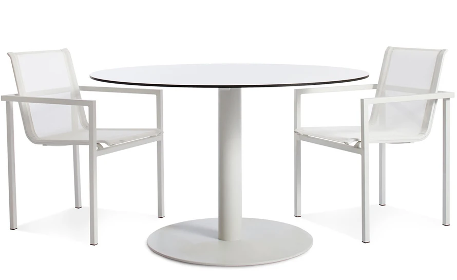 Don’t forget to rub the lotion on your skin. The Skiff Outdoor Stacking Chair features a crisp and minimal powder-coated aluminum frame and Batyline textile. The Batyline mesh is mildew, rot and tear resistant. The entire Skiff collection offers clean lines designed to weather the elements.