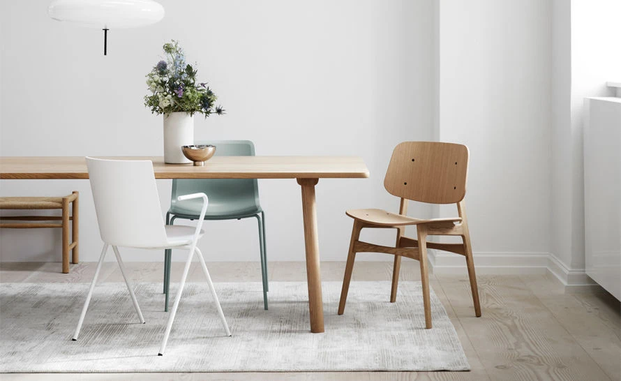 An extremely contemporary design, the Soborg chair bridges the contrast between industrial and handcrafted solutions, along with the textural properties of solid wood, plywood and steel. All compounded with a lightweight and solidly grounded aesthetic.