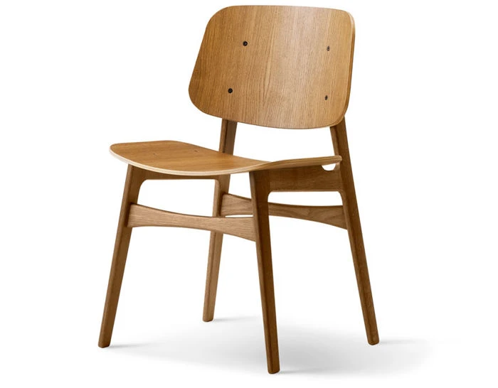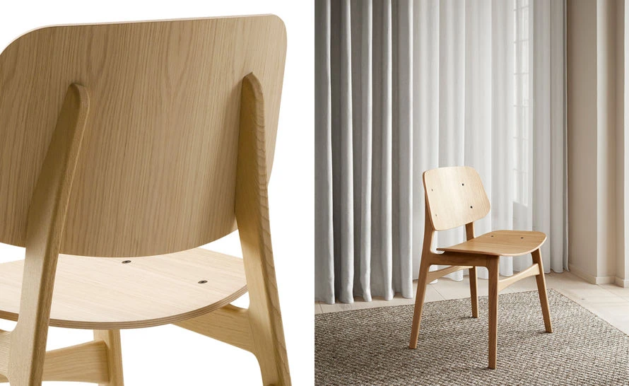 Mogensen exhibited the first prototype for the Soborg Chair in 1950. His intention was to make a shell chair that could be produced with new machineries of the time. The rounded shaped seat and back in molded plywood combined with a solid wood frame, reflected how Mogensen fused his international contact with traditional cabinet-makers’ solutions and his own functionalist design identity.