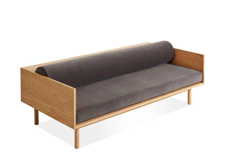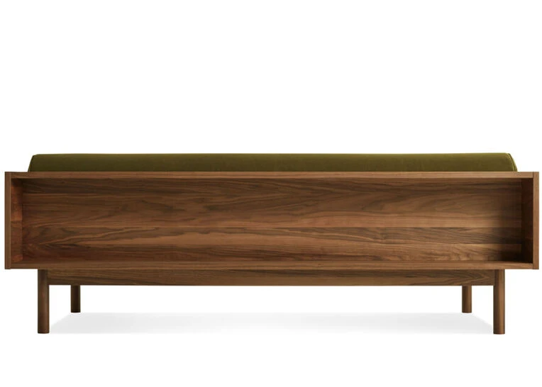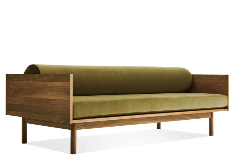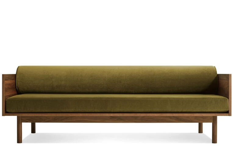 Natural walnut or white oak, high resiliency foam, velvet