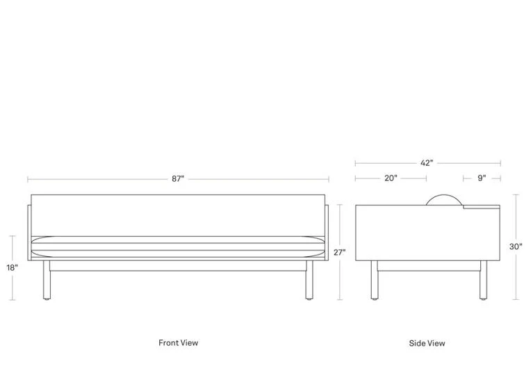 Sofa: 87″ w | 30″ h | 42″ d | seat: 18″ h | 20″ d