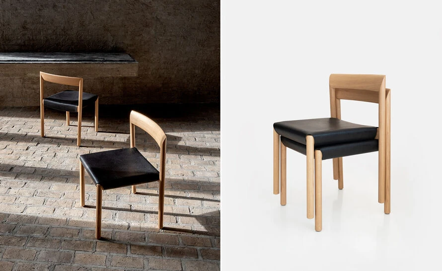Stax is an innovative dining chair that is functional and beautiful. Using traditional woodworking techniques and cutting edge technology, the Stax chair is a beautiful piece of solid wood furniture. The mitered corners create the illusion of a continuous wood grain. The removable slung seat, available in both fabric and leather, provides an exceptionally comfortable sit. Multiple chairs can be stacked when not in use for easy storage. Suitable for both residential and contract use.