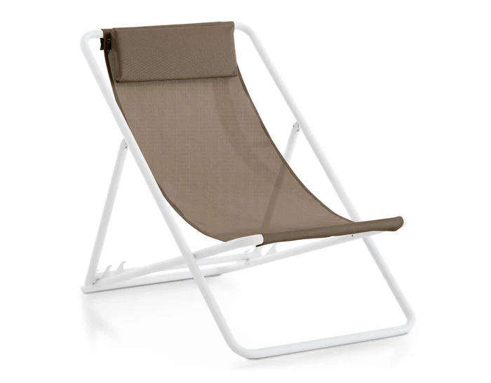 This reclining and lightweight chair is the best company for a relaxing day outdoors. With its comfortable headrest cushion and three different positions, disconnecting from the rest of the world is ensured. You can take it to the beach or the countryside, place it next to the pool or on a terrace, or even an urban balcony. It is the perfect chair to rest, read or clear your mind while looking at the horizon.