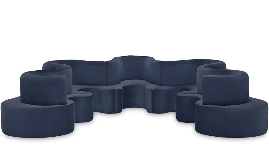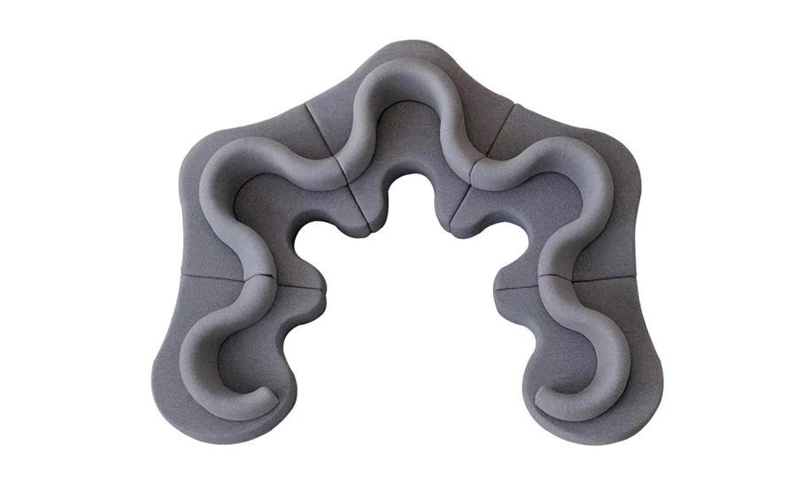 Verner Panton was a master of the fluid, futuristic style of 1960s design which introduced the Pop aesthetic to furniture and interiors. He designed the cloverleaf sofa in 1969 for the Visiona exhibition as a spectacular eye-catcher and yet a comfortable place to rest and talk – he ended up creating an iconic collection that truly functions as a social piece bringing people closer to each other. Cloverleaf playfully walks the line between sensuous seating sculpture and modular pragmatism.