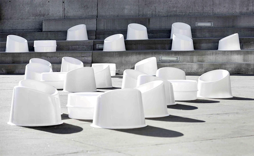 Recently Verpan, under license, updated the Panto Pop by adding UV stabilizers to the thermoplastic mix producing a more practical version for outdoor use. The addition of the drainage hole at the base of the seat now allows water to escape more freely improving both maintenance and durability.