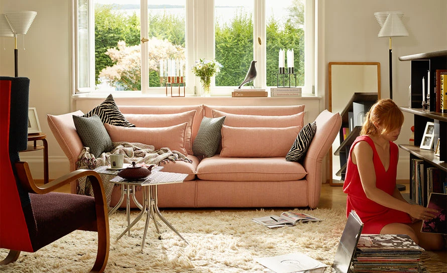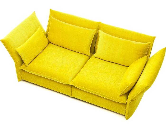 The Mariposa Sofa does not openly display this function: the slim side and back elements can be continuously and silently adjusted, from an upright position to an outward angle of approximately 30° and back again. The resistance is calibrated in such a way that these elements stay in place when the sitter leans back in a normal manner, but will adjust to the desired angle when intentional pressure is applied. This flexibility allows individual users to determine the position that is most comfortable for them. Thanks to the unusual depth of the seat surface, two people can sit on either end and comfortably face each other – to carry on a conversation or share a cosy spot for reading. With these special features, the Mariposa Sofa offers an inviting place to prop up your feet and relax.