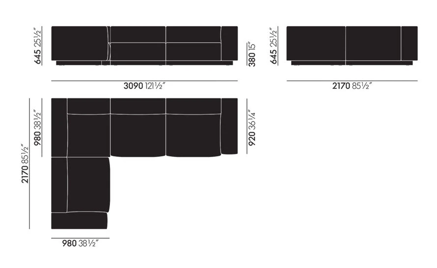 Thanks to its modular design elements, the size and form of the Soft Modular Sofa can be customized to meet a diverse range of requirements. And optional elements as well as a wide selection of leather and fabric covers in a variety of colors allow further personalization of any individual configuration. Please call the hive showroom to specify any other configurations.